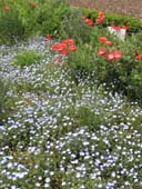 他にポピー、ネモフィラ、ヤグルマソウ、ヒメキンギョソウなども植えてあり百花繚乱。