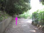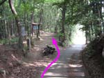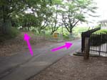 | 保護緑地へは左 | この階段を上った所が1号緑地。左へ行けば出口。 | 出口から左へ登ると上山口中(右の金網)。矢印は国有地の雑木林への道 | 国有地内のトレール | どちらも駅へ行ける。右へ行けば湖畔霊園内を通って駅へ(*1) |