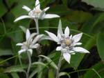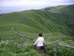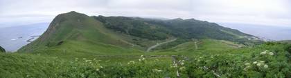 まず元地港へ向かう自動車道路を30分ほど登ると林道コースの分岐。ここから林道を北へ50分ほど登ると「レブンウスユキソウ群生地」。エーデルワイスの仲間で日本でも高地に亜種が咲くが、レブンウスユキソウはエーデルワイスに近い。 |