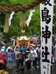 宿の隣は厳島神社。今日は年に一度の祭りでみこしの他にお稚児さんや武者行列で賑やか。朝、みこしの出発を見送った後、南部のハイキングに出発。 ![]() |