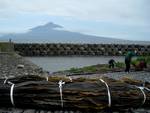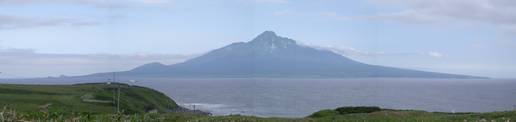 知床から香深までのバスは出たばかりで2時間待たねばならない。 第1村人に聞いてみると香深まで歩いても40分とのこと。ウォーキングに来たのだから・・・と、歩くことにする。途中の漁港を前景に背景に利尻岳と言う写真にもってこいの場所もあり、気分的には短く感じた。15:40のフェリーまでまだ1時間半もあるので町を散策するが漁業組合が経営するスーパーが品物が確かで安い。また2階の食堂「かふか」はうに丼などを格安で提供する穴場である(食堂は昼食時と夜だけの営業)。 |