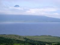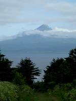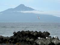 しかしお目当ての利尻岳は3合目くらいから上が雲に覆われておりがっかり。それでも灯台のあたりまで来ると山頂付近がちょっぴり顔を出すようになった。想像していたより高い位置に山頂が見え、その高さに感動。更に知床港付近まで降りて行くと雲が切れ全容が見える。