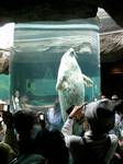 一旦今夜の投宿先旭川ロワジールHに寄って荷物を預かって貰い、4条9丁目のバス停から旭山動植物園行きに乗る。各駅停車なので約40分かかる(市内〜動植物園 \400)。 旭山動植物園 動植物園は山の斜面に作られ、園内は緑多い。ご存知のように旭山動物園は自然生態が観察できる展示方法が種々工夫され人気を博している。動物自身はもちろんのこと、動物の生態を知り尽くした飼育員の人達、それに園内整理・案内をしている市民ボランティアのおじさんのトークも笑いを誘い、皆がスターであった。 途中、突然のゲリラ豪雨に困惑したが、無料貸傘が用意されており事なきを得た。