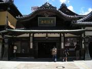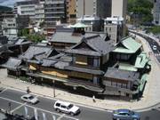海沿いの道を約30km、道後温泉へ。道後温泉本館を見渡す高台の駐車場に停める。ここから見ると本館がジオラマのように見える。丁度、ぼっちゃん列車も駅に入っていた。