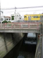 中井駅 | 辰巳橋。妙正寺川の終点。 左から流れてきた川は、神田川の溢れた水と処理された下水と思われる。 13:30 |