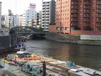 | 歴史を感じさせる銅葺の問屋さん | 最下流の「柳橋」 | 15:30 ゴ〜〜ル! 神田川の河口。 隅田川(大川)への流れ込み |
