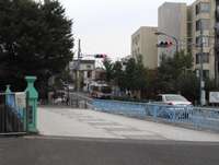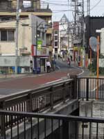12:55(途中昼食30分)高土橋 放水路の取入口からしばらくは遊歩道が途切れる。さかえ通りから高田馬場駅前を通って高土橋へ。ここで放水路がまた合流する。 高田馬場は学生街で、安くてボリウム満点のランチ店が沢山ある。 |