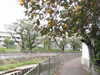 遊歩道の上に 柿たわわ |