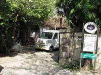 ![]() 赤破線の道 突き当りは金網で入れない。 ![]() 金網で囲まれた三角地を川から見たところ |
