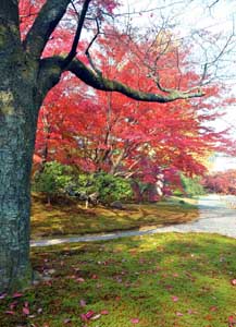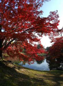 緻密に計算し尽くされた庭園設計であるが、紅葉する樹木は少ない。