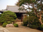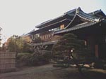 9 妙寿寺:寺町界隈では大きな部類に属す。本堂(左奥に屋根が見える)はとても大きいがコンクリートになってしまって残念。でも庫裏はご覧のとおり木造のまま残っている。 大きな料亭か旅館といったつくりであるが、3階建てくらいの大きさがあり、全体としては大正ロマンを感じさせる。 また、梵鐘は豪徳寺の梵鐘と同じ匠・藤原正次の作で1679年の作。心学者:中沢道二(知らない)の墓がある。 |