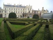 やはり城がある。裏手は広大な庭園で、公園として公開されている。お城の一部は、古城ホテルとして開放されている。 当初このヴァルチツェの古城ホテルに泊まるつもりだったが土・日のみの営業で今日はやっていないとの事。 |