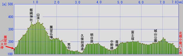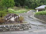 堀切 山頂の城址碑 堀切から展望台への下り道は広葉樹となる。紅葉の季節は良さそう。 展望広場(向こうは馬場と屋敷跡)。城山公園からボードウォークでも来れる。 荒句への道。秋のみのりがたわわ