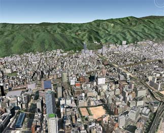 Google Earth ヴァージョン4から日本各地の建造物も3D化された。